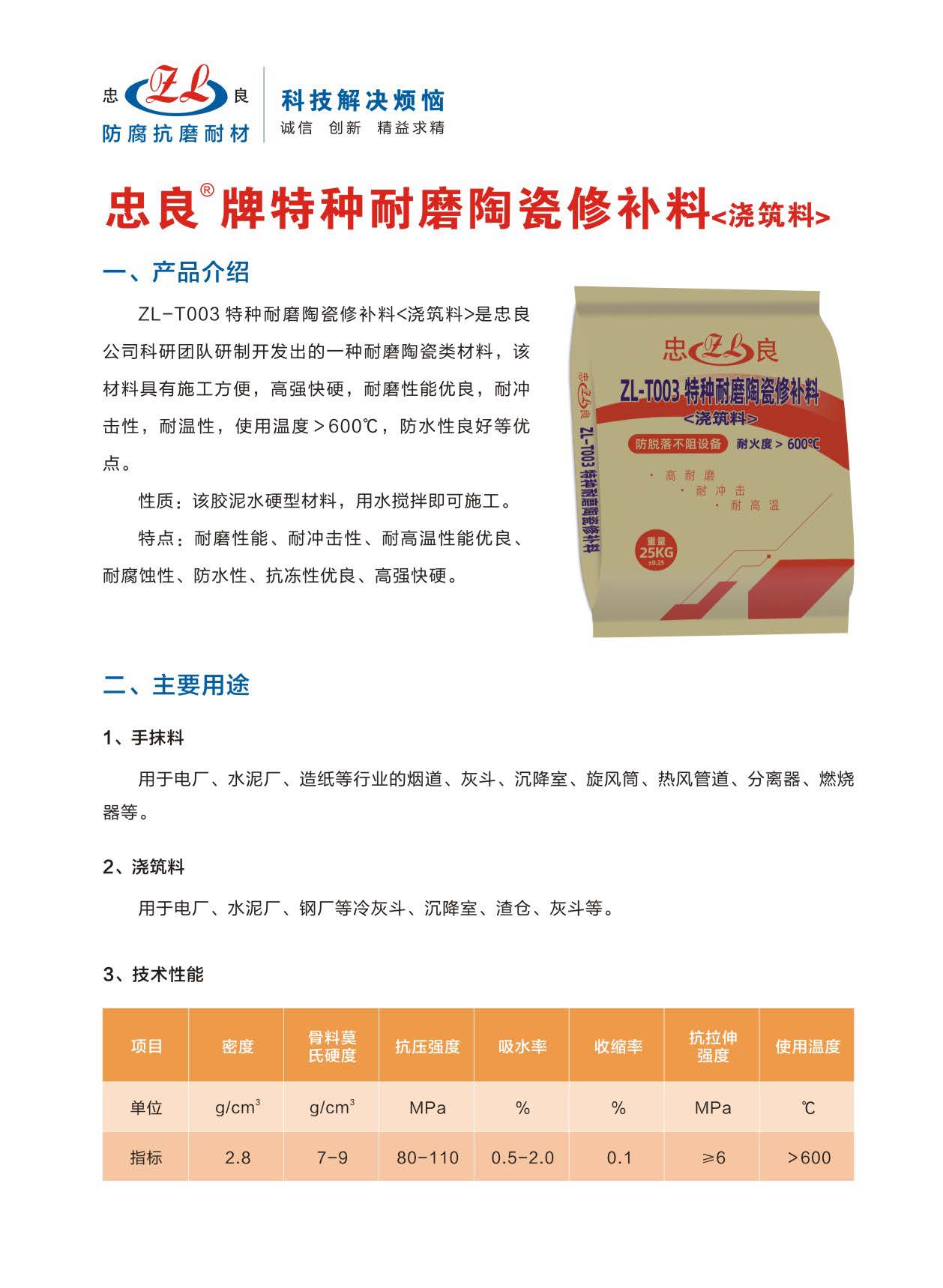 忠良牌特种耐磨陶瓷修补料详情