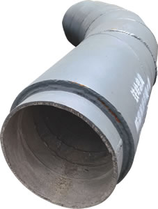 该产品是我公司根据国内其它复合制品而改制的一种新型耐磨陶瓷类管件。它的优点在于耐磨板与钢体之间采用双重加固措施,使其防脱落、抗压、抗震、抗冲击、防水等性能大大增强,克服了普通复合制品易脱落、易碎而堵设备的后顾之忧,主要应用于炉一次风管、分配器、出灰管路、易损管件;可加工任意规格的管件。现已大量推广在水泥、电力、矿山冶金等。
